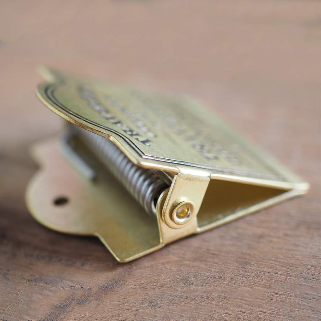 This Brass Clip will keep your TRAVELER’S notebook open. Made in a factory in the old downtown area of Tokyo, this clip’s materials, size, design and spring strength are especially created for use with TRAVELER’S notebook. When taking your TRAVELER’S notebook on the go, attach it to the leather cover or a refill so it’s ready to use when you want to write or take a picture. There’s also a hole in the back that you can use to hang it on a wall and use your notebook for decoration. Because it’s made of solid brass, its color will mature and change the more you use it!