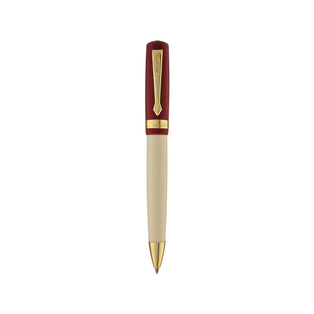 Nostalgic ballpoint pen in muted red with golden details made of precious resin.
