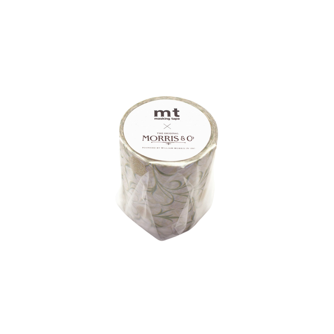 This is MT × Morris & Co. Washi Tape in the Scroll and Flower design. This premium washi tape features an intricate pattern inspired by the renowned designs of Morris & Co., bringing a touch of elegance to your crafts. Perfect for adding decorative accents to scrapbooks, journals, and gifts, this tape is both functional and beautiful.