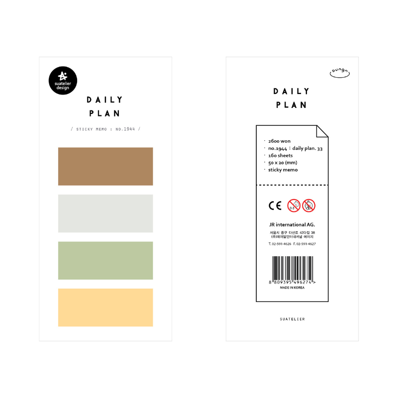 Suatelier Daily Plan Sticky Memo - Daily Plan Blue
