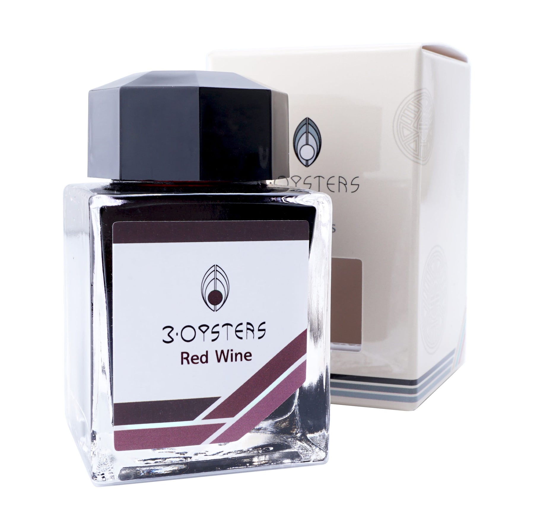 38mlのガラス製ボトルは、充填しやすいように底の角が傾いた四角い形状です。 3つのオイスターインクはすべて水性染料を使用して作られ、pH中性で非永久的です.