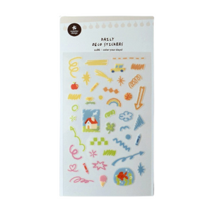 Brighten up your planners, journals, and crafts with the Suatelier Daily Deco Sticker - Color Your Days! Featuring vibrant and playful designs, this sticker sheet adds a cheerful touch to any creative project. Made from durable PVC, it's perfect for decorating notebooks, calendars, and more.