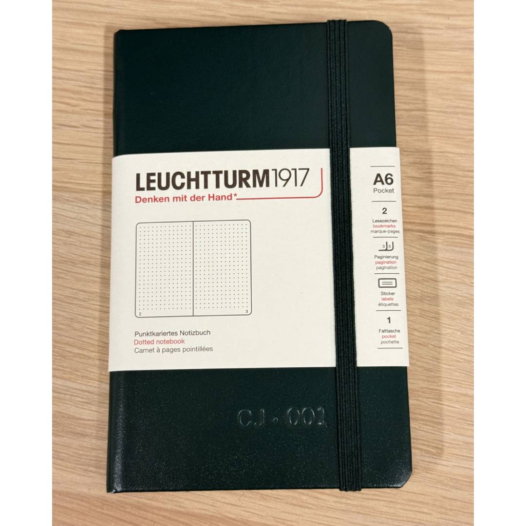 This is Leuchtturm1917 A6 Pocket Hardcover Notebook in the captivating Forest Green hue, designed to inspire creativity and organization. With dotted pages, this pocket-sized gem offers the perfect canvas for bullet journaling, sketching, and freeform note-taking.