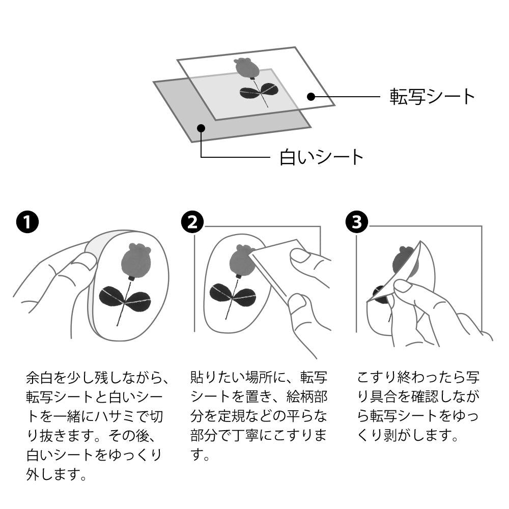 This transfer sticker integrates with the paper as if it were a drawing by rubbing with light force. Since no bumps are created at all, the image is as perfect as if it had been printed.
