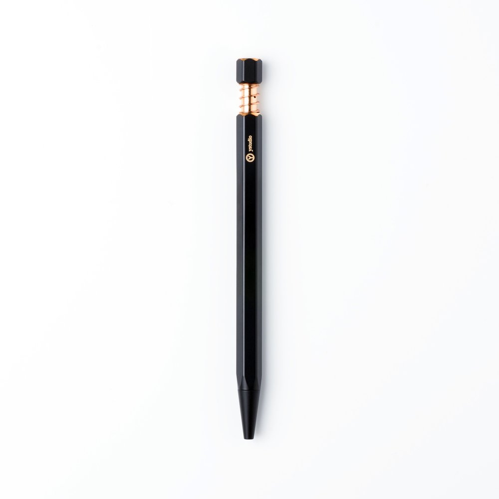 Ystudio Brassing Ballpoint Pen is simple, black with a hint of metal. With the pen's spiral exposed on top, the designers of ystudio combine the mechanics of a pen with the distinctive looks of the Brassing collection. Due to its heavy material, the pen is sure to provide stability while writing. Due to its unusual looks, it will become something to hold on to.