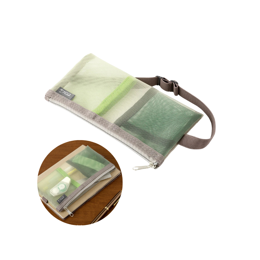 Midori Mesh Pen Pouch - Check Green [Limited Edition]